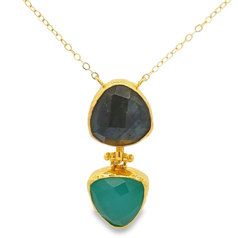 Kette Messing vergoldet mit Aquachalcedon und Labradorit