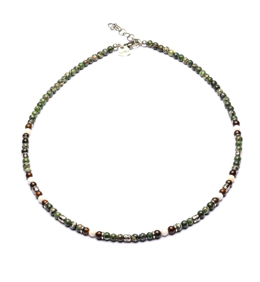 Maratea - Collier 4 mm Kugeln - 925er Silber Serpentin, Bronzit, Perlmutt