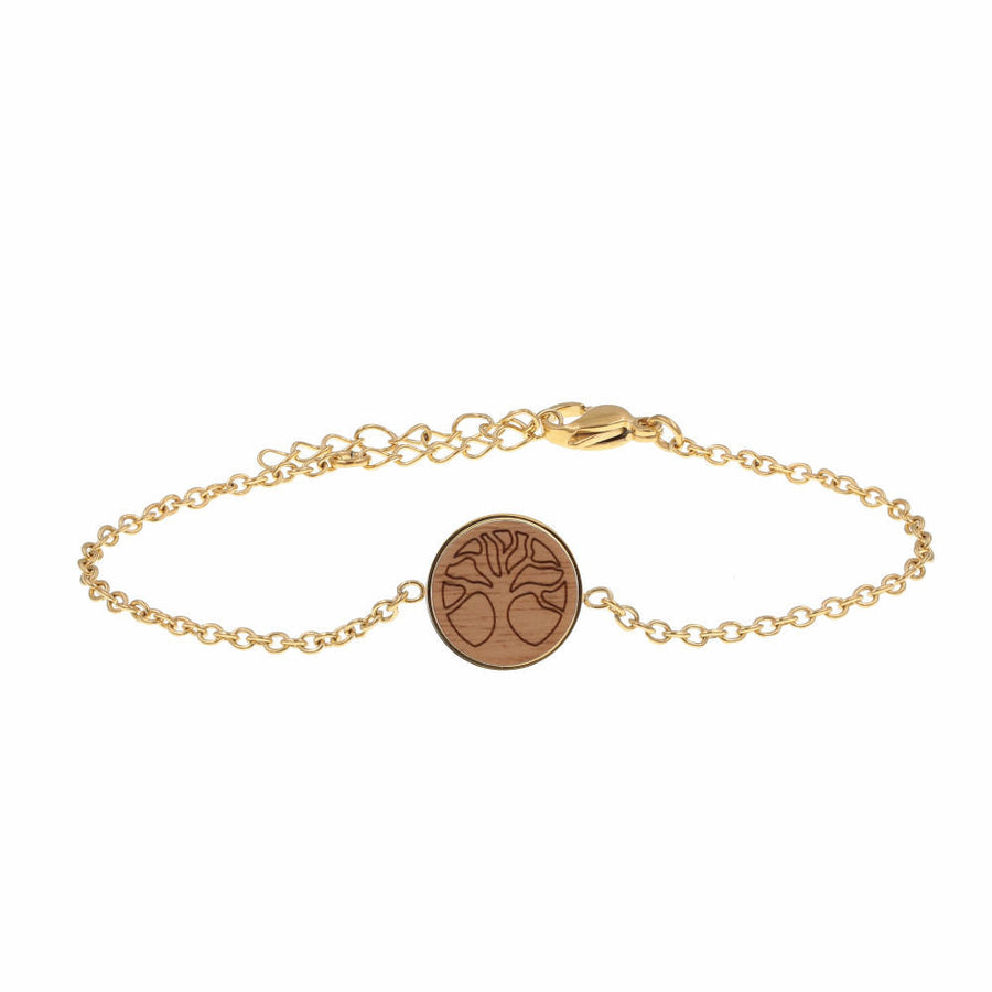 Baum des Lebens Armband Skyla Gold aus Edelstahl und Nussholz
