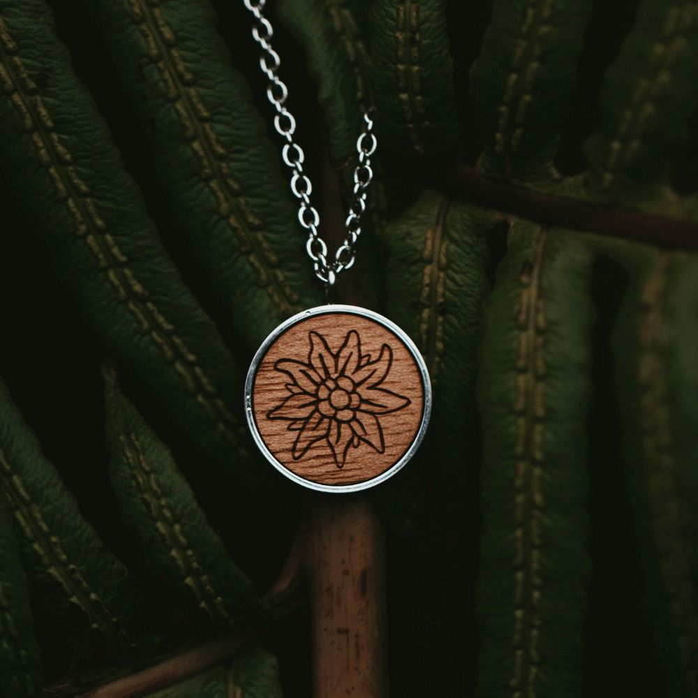 Edelweiss Halskette Skyla aus Edelstahl und Nussholz