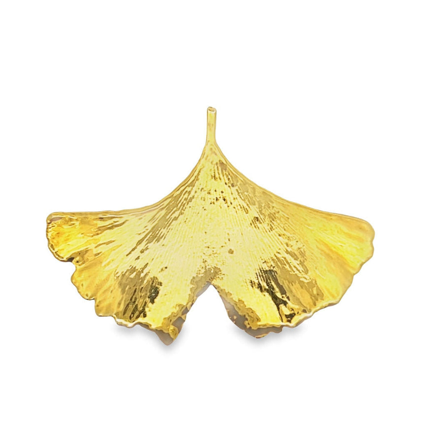 Ginkgo Anhänger, Echtblatt mit Kette, vergoldet