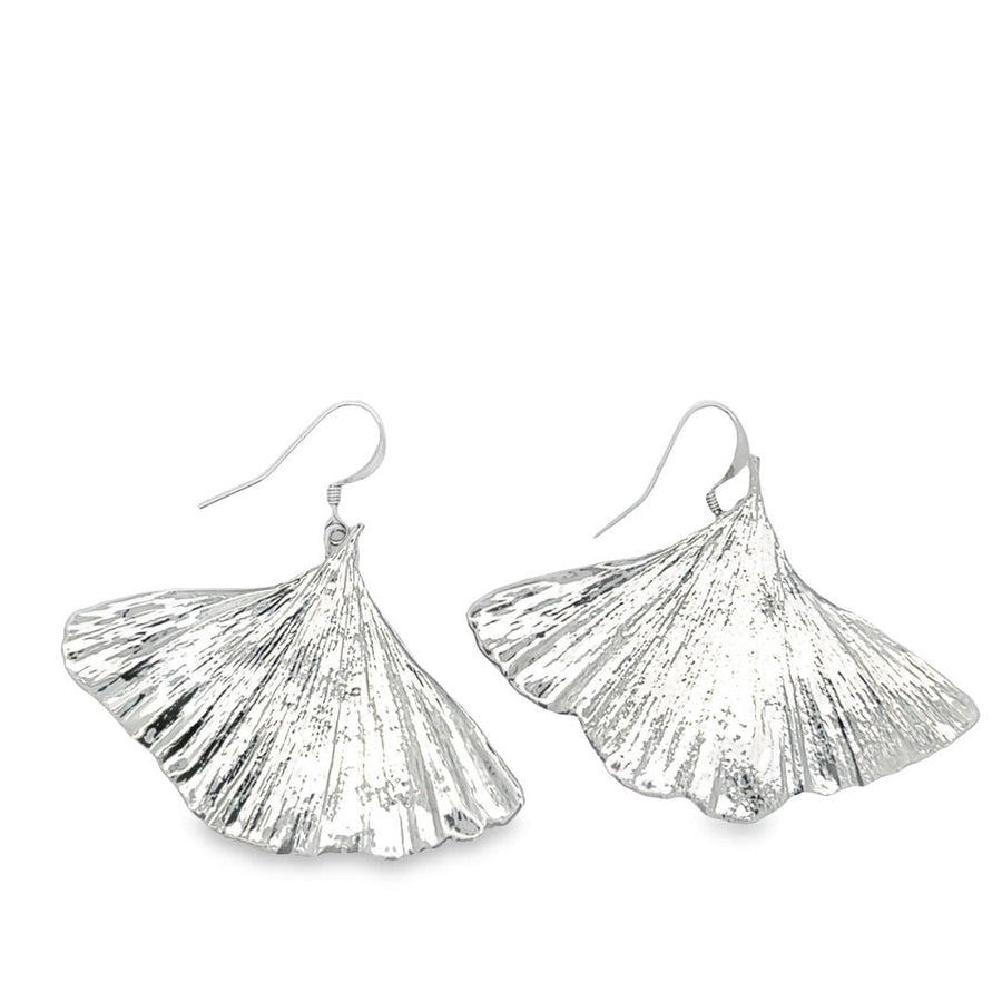 Ginkgo Ohrhänger, Echtblatt, rhodiniert