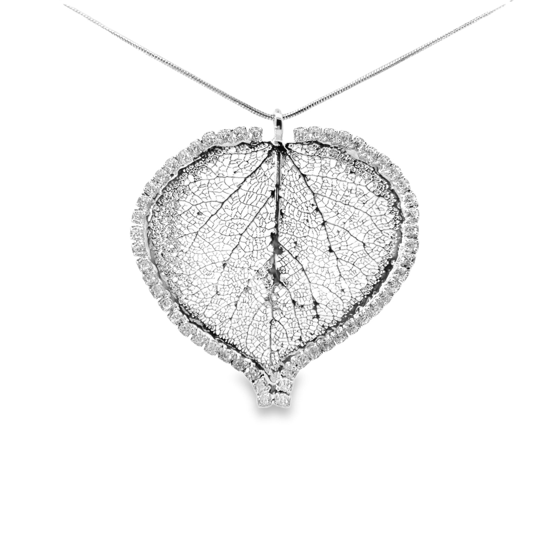 • Pendant material: real aspen leaf, rhodium-plated