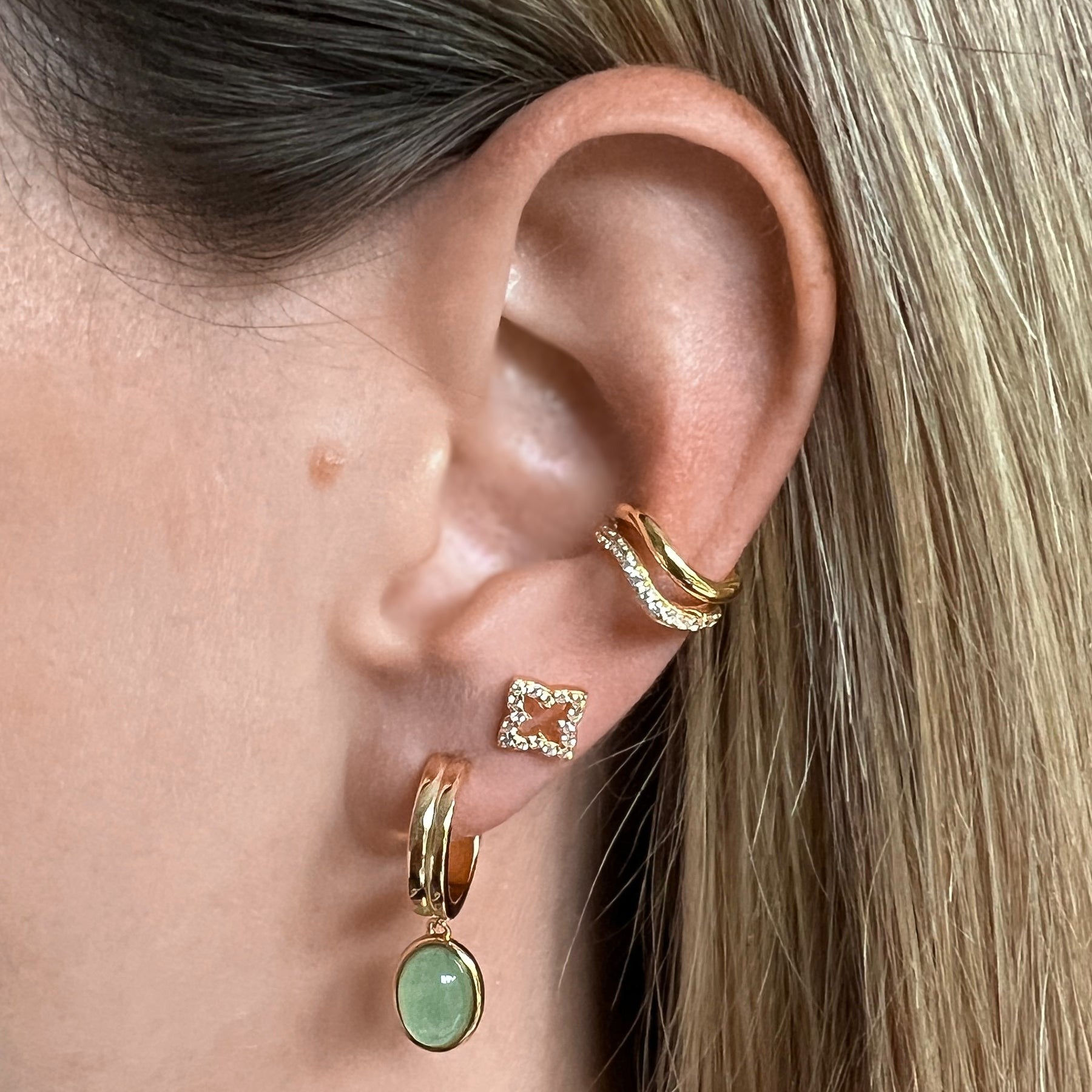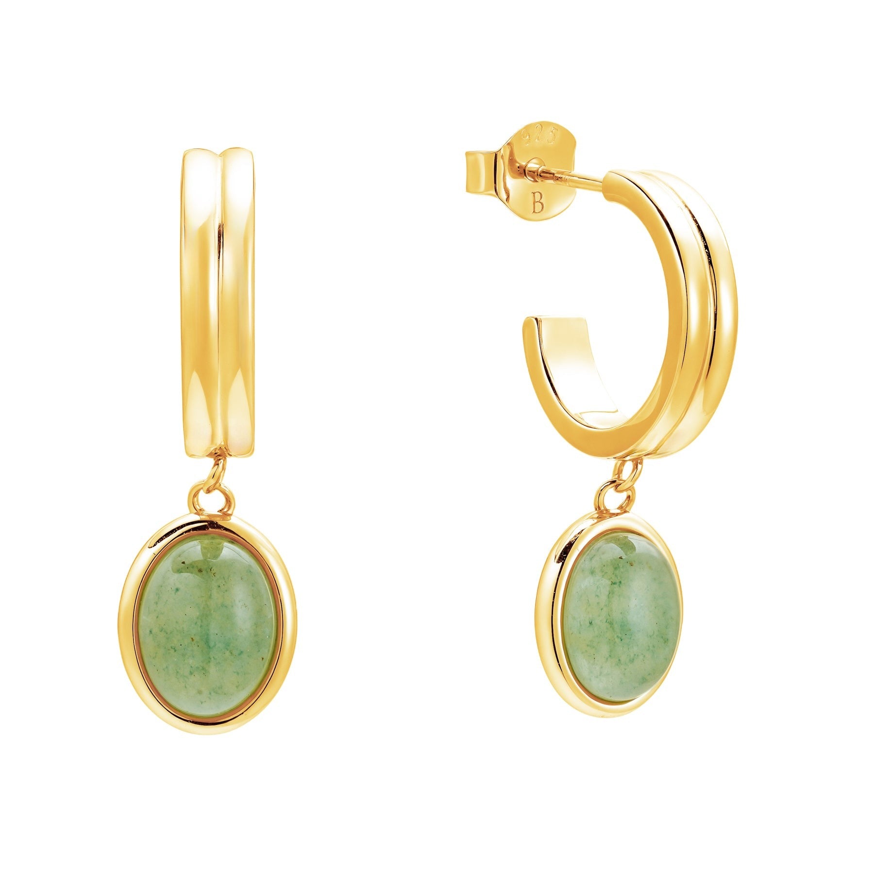 Unsere Ohrringe La Paz verbinden klassische Eleganz mit einem Hauch Exzentrik. Der Edelsteinanhänger aus grünem Aventurin bringt Tiefe und Raffinesse ins Spiel, während die edle Form an die Coolness ikonischer Schmuckstücke aus vergangenen Jahrzehnten erinnert. Ein eleganter Eyecatcher für Tag und Nacht.