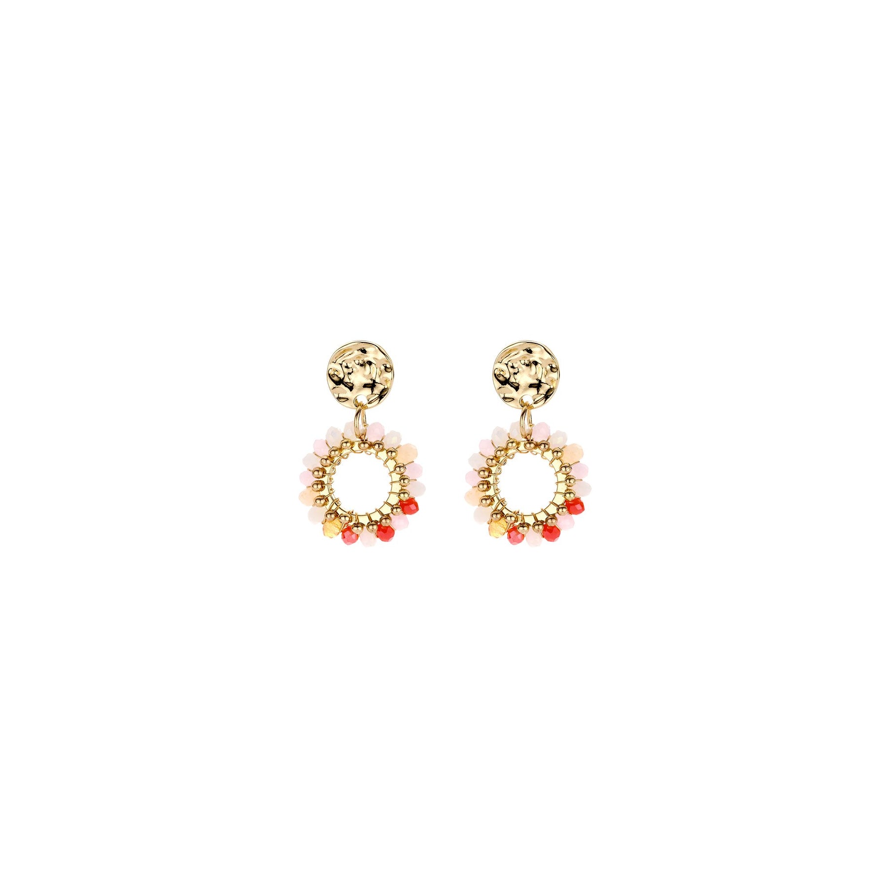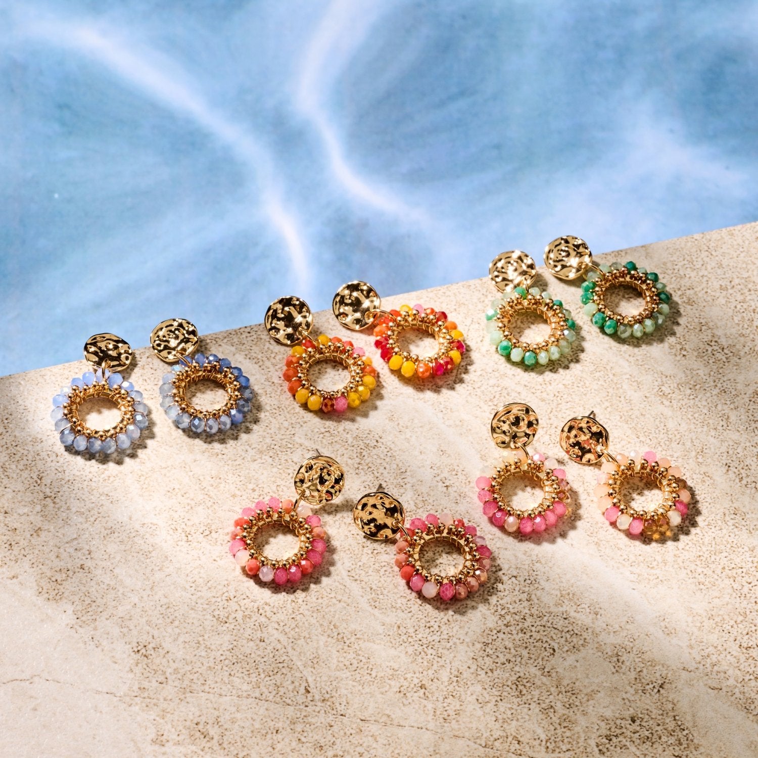 Zarte Ohrhänger in kompakter, runder Form mit fein abgestimmten Glaskristallen. Die kleinen, facettierten Kristallperlen umrahmen das offene Zentrum und sorgen für ein dezentes, elegantes Funkeln.