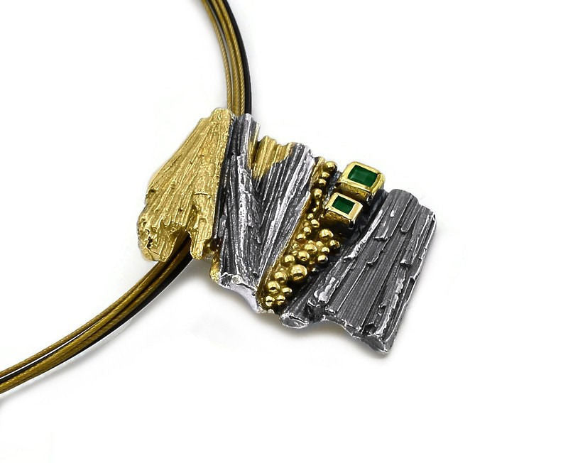 Ciondolo in argento placcato oro e argento annerito