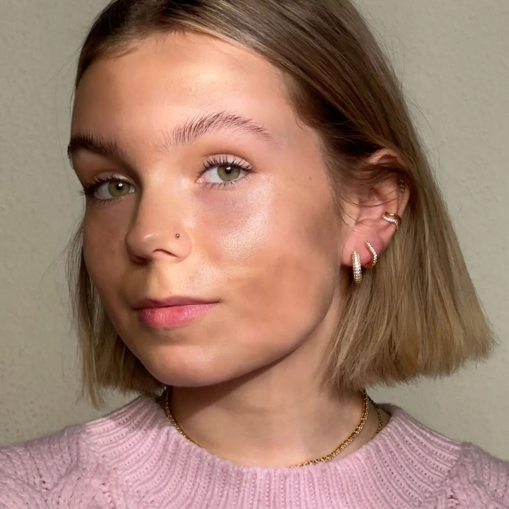I nostri piccoli orecchini a cerchio Kitzbühel con la loro forma organica sono un accessorio elegante e delicato che dona ad ogni look quel qualcosa in più. Sono incastonati con scintillanti pietre di zirconia che forniscono una dose extra di lucentezza e glamour. La loro forma delicata e delicata li rende perfetti da indossare tutti i giorni o per le occasioni speciali. Non importa se eleganti o molto comodi, i nostri piccoli orecchini a cerchio di Kitzbühel con la loro forma organica sono sempre un compagno perfetto e senza tempo. Assicurati di dare un'occhiata al nostro polsino coordinato Kitzbühel!