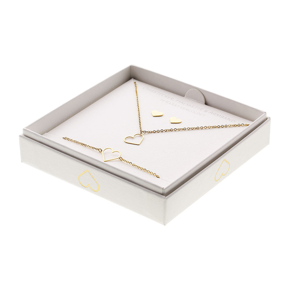 Geschenkset - Halskette-Armband-Ohrstecker - vergoldet - Herz