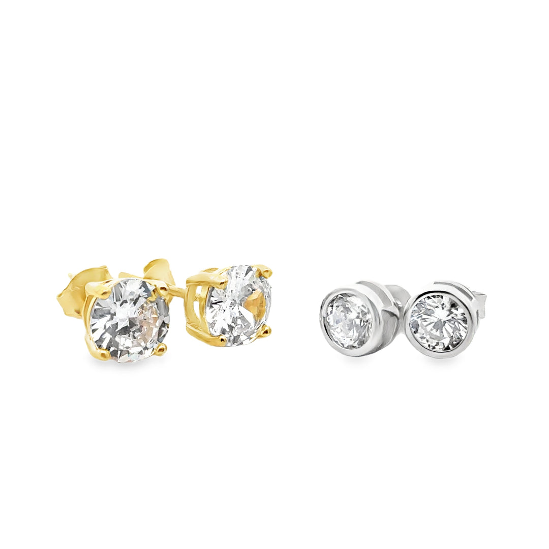 Orecchini a bottone "griffe" in argento placcato oro, cristallo 5 mm