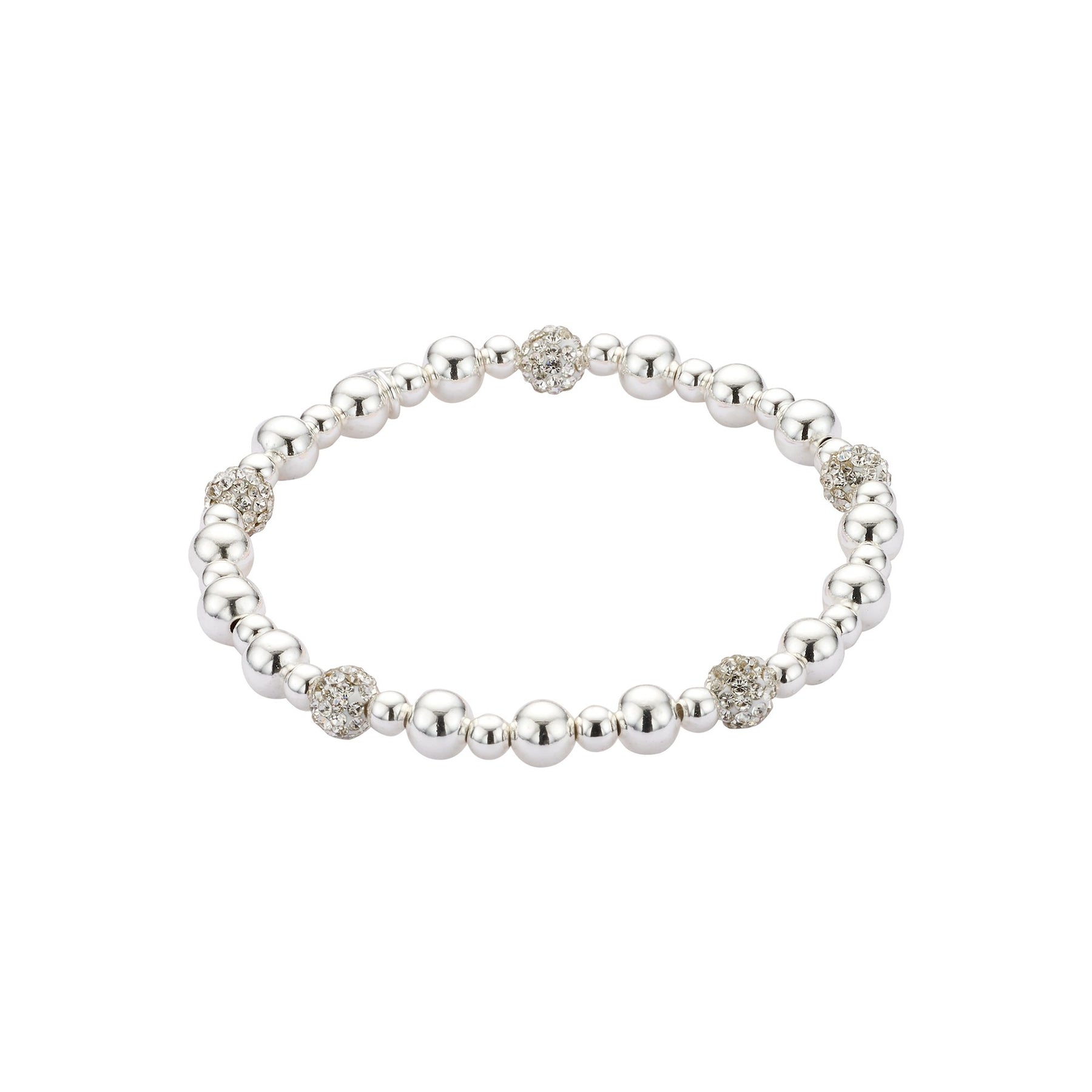 Bracciale elegante con sfere lucide color argento in due dimensioni diverse. La combinazione di perle da 4 mm e 6 mm crea un design armonioso e moderno. Le sfere con cristalli donano luminosità e raffinati punti luce.