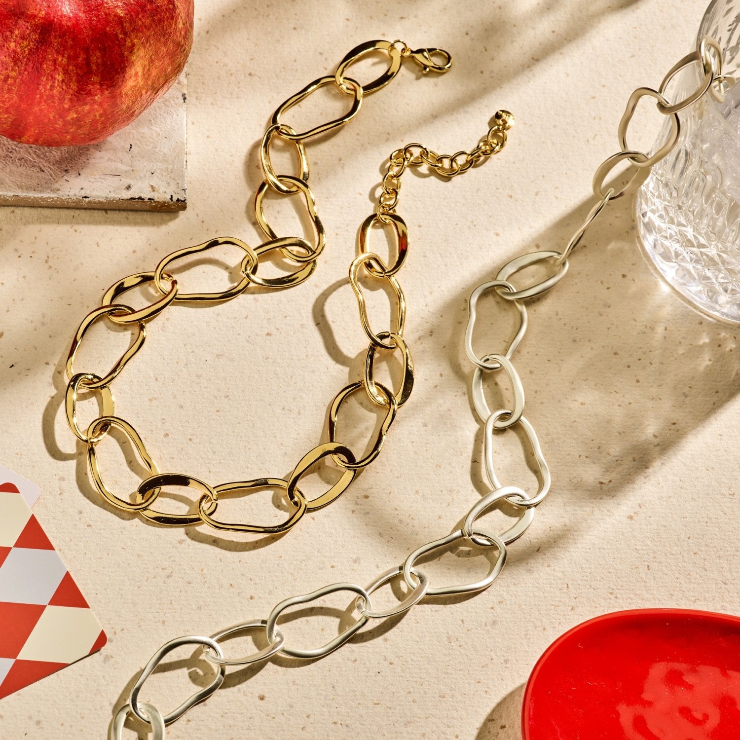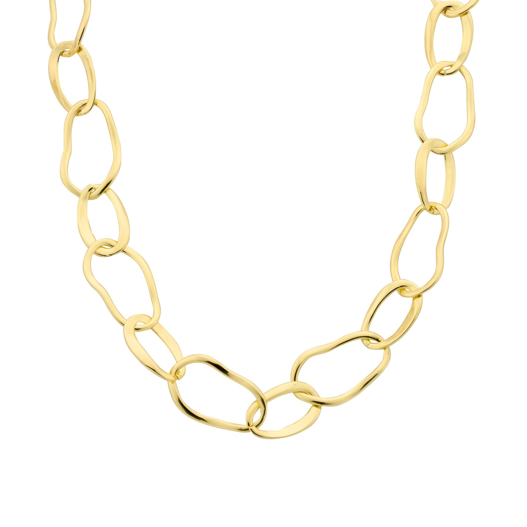 Modern necklace with decorative chain links in a shiny gold-plated finish. The classic link design gives the necklace a stylish and timeless appearance. The slightly textured surface of the links adds depth and elegance.